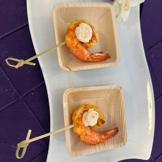 Next, delicious hot and cold hors d’oeuvres including grilled prawn skewers with yogurt-mint tzatziki sauce, balsamic fig & goat cheese on flatbread, bruschetta spring pea toasted herbed crostini with pea puree and garnished with chopped tomato, avocado, light olive oil and red wine vinegar drizzle and baby spinach or arugula leaf.